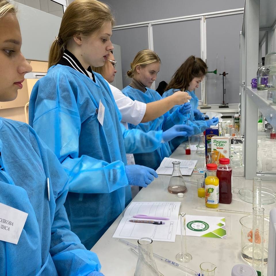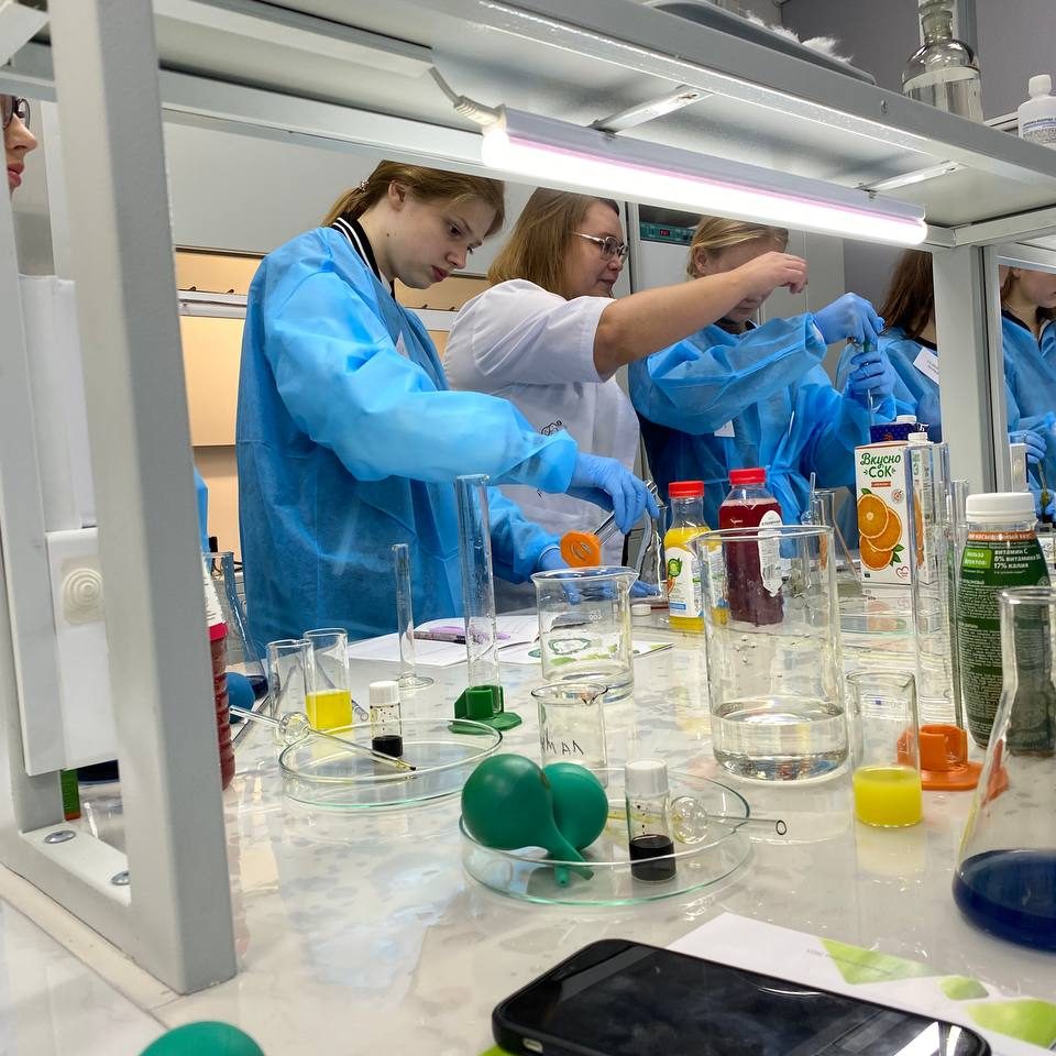 Они с удовольствием учились работать с лабораторной посудой, тестировали различные соки на содержание витамина С и обсуждали полученные результатыдруг с другом. Было забавно и познавательно одновременно! ![]()