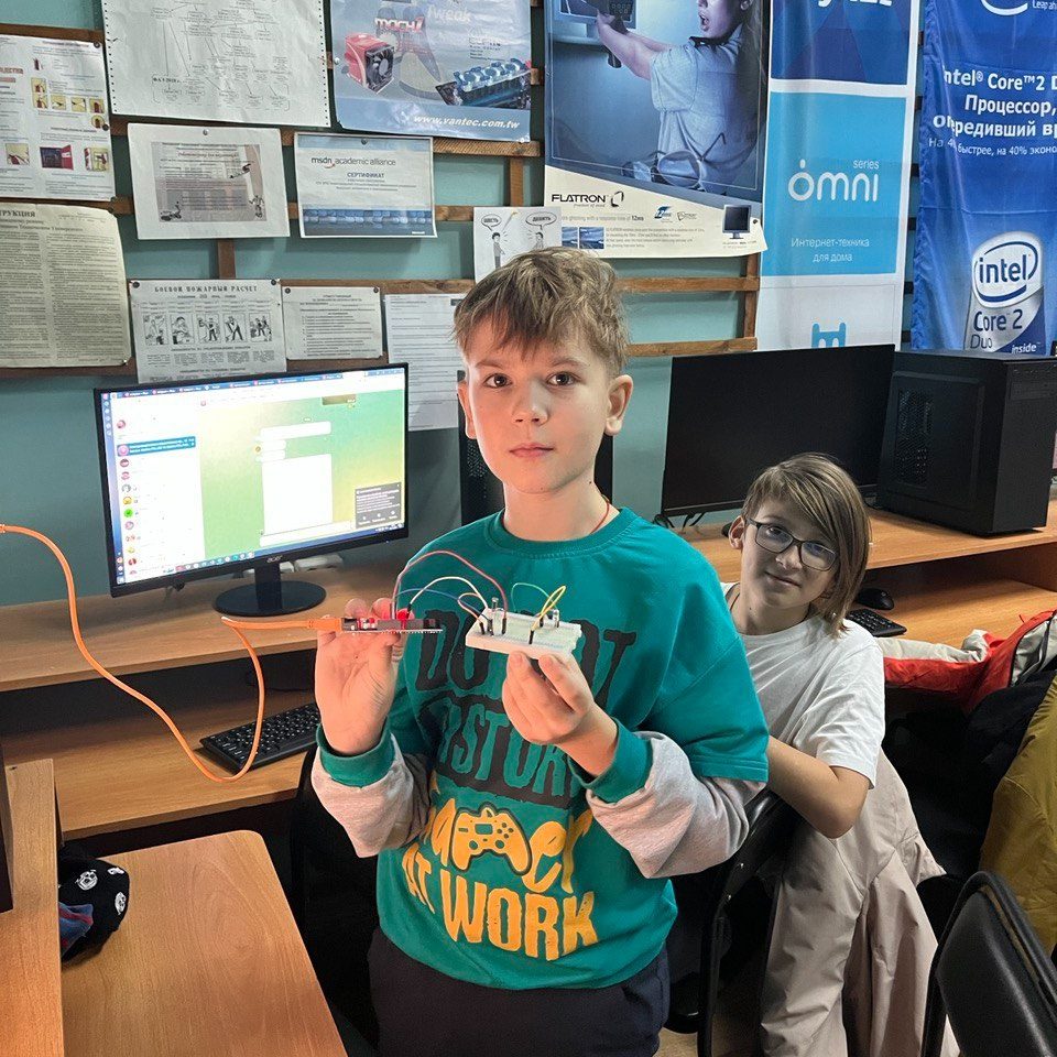 Ребята с преподавателем Наталья Эрдили на занятии изучили подключение фоторезистора к микроконтроллеру, что позволило контролировать уровень освещенности и реагировать на его изменение.